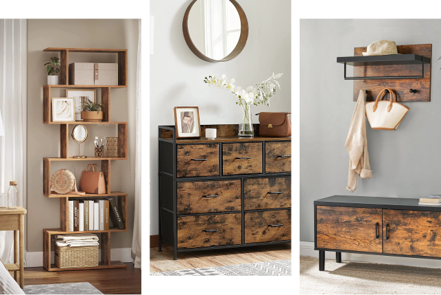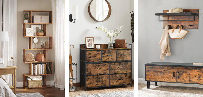 Servírovací vozík, úzka polička na kolieskach, kovový rám, rustikálny hnedý